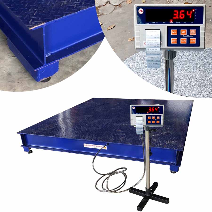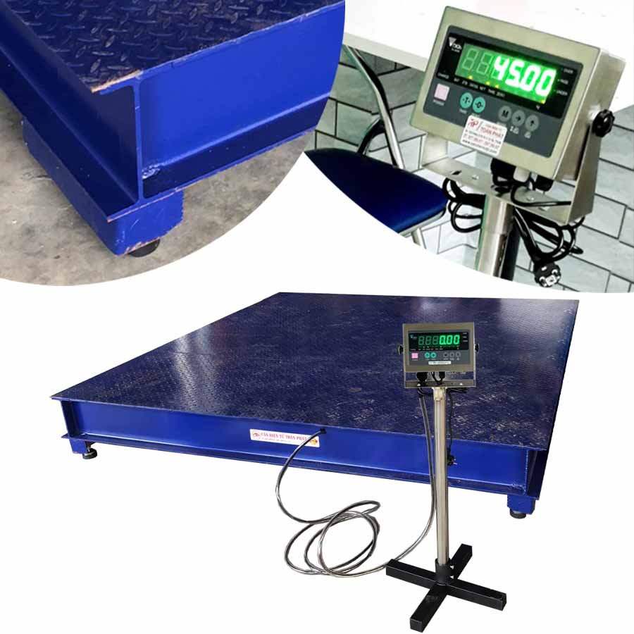Cân sàn điện tử 5 tấn có các kích thước bàn tùy chọn: 1,2m x 1,2m ; 1,5mx 1,5m ; 2m x 2m ... và kích thước theo yêu cầu khác